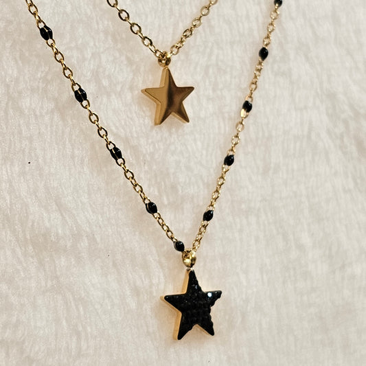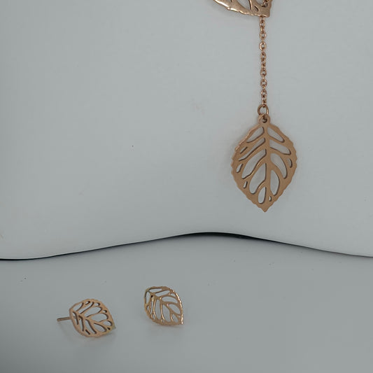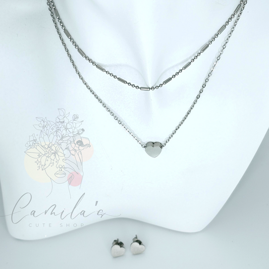 HEART DOUBLE NECKLACE AND EARRINGS STAINLESS STEEL SET