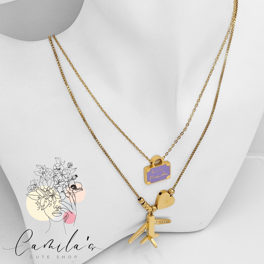 Gold Airplane Travel Charm Pendant Necklaceset with earings
